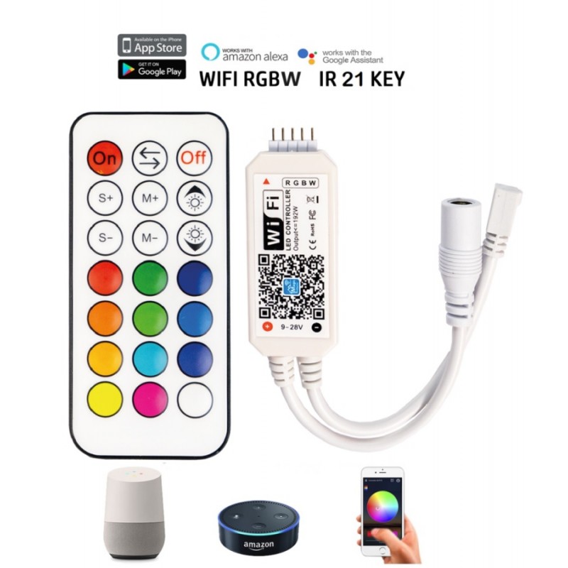 El controlador permite conectarse a dispositivos de Amazon Alexa (eco) y Google assistant para poder controlar su iluminación RGB+W desde estos dispositivos.