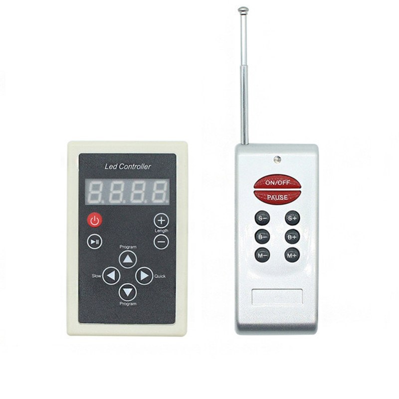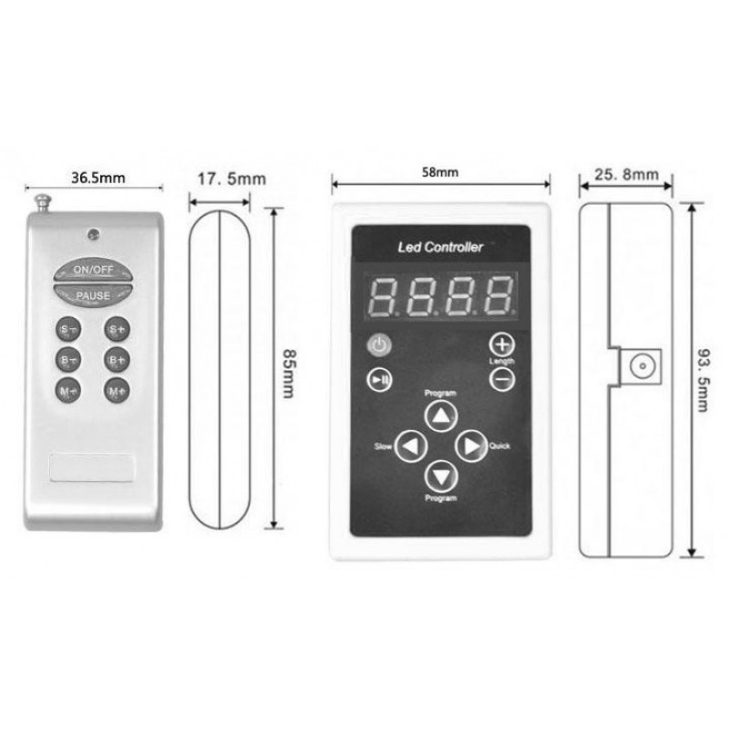 Desde el mando a distancia por radiofrecuencia, puedes controlar los diferentes programas de las tiras PIXEL LED. El controlador dispone de un total de 133 programas con diferentes efectos y transiciones (también permite colores fijos).