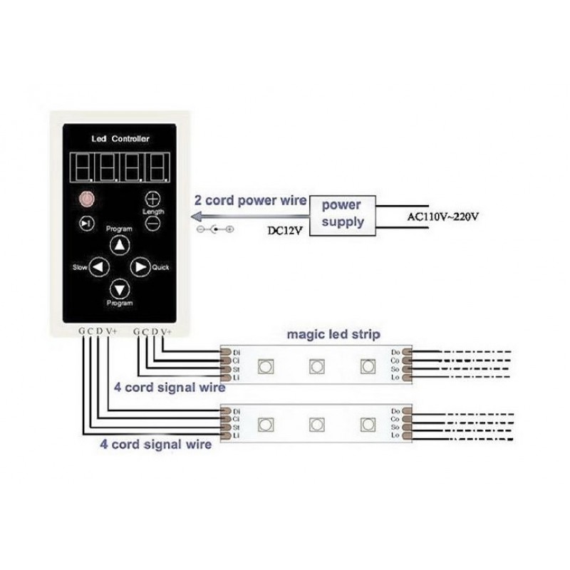 Controlador para tira PIXEL led RGB Digital 12V/24V con 2 salidas 2048px cada una CRGBD100.