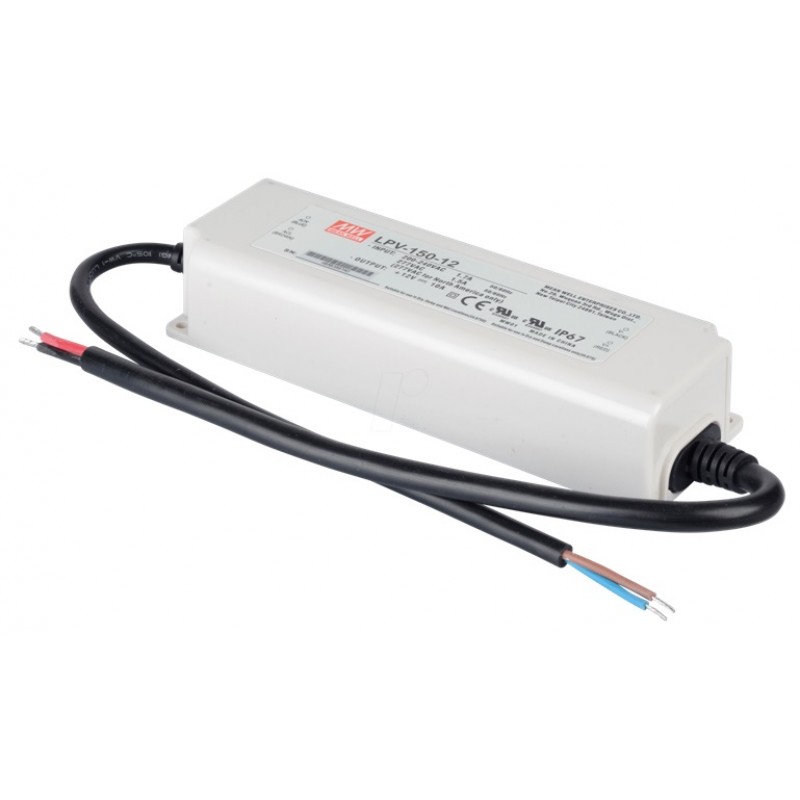 Fuentes de alimentación o Driver 150W 12VDC MEAN WELL estanca FA12150MWIP, están fabricadas especialmente para alimentar sistemas de Led. Gracias a su total estanquidad, con un grado de protección IP67, pueden utilizarse en el exterior, con un rango de temperaturas de -30ºC~+50ºC.
