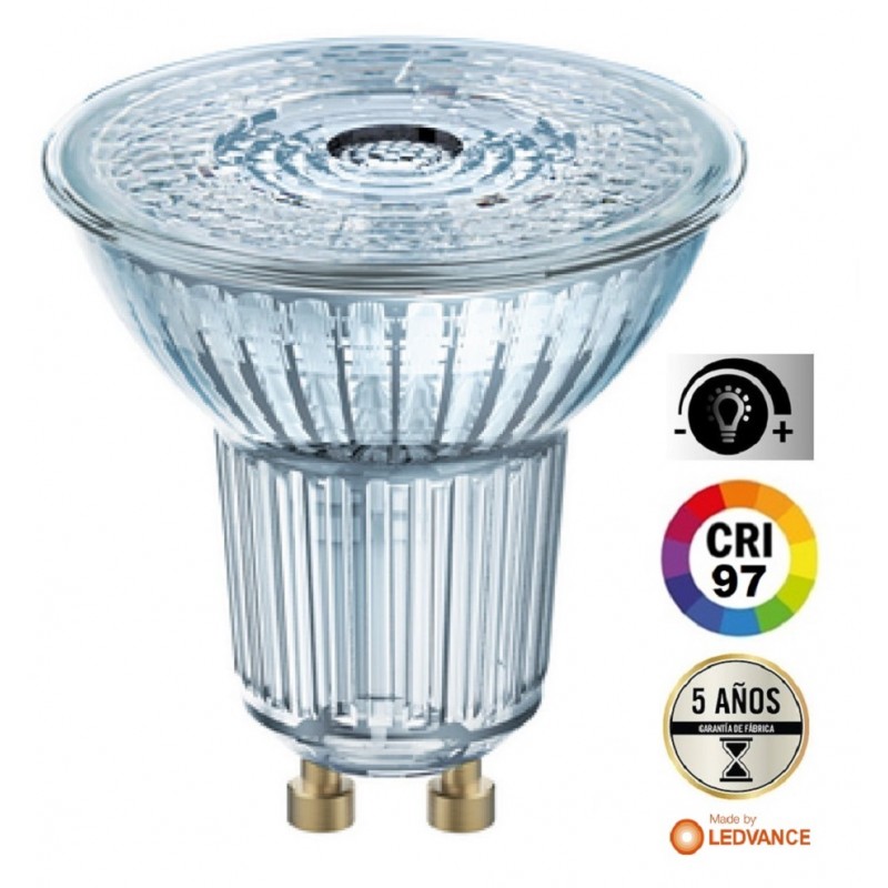 Bombilla LED GU10 PRO 9W 36º 575Lm Regulable CRI-97 GU10OSR9W369XXDM10, perfecta para iluminación de interiores.