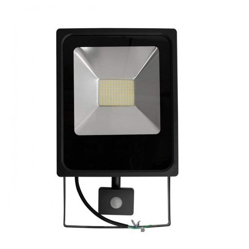 Proyector LED exterior SLIM 50W IP65 SMD con detector de movimiento FESE50WSMDDM con carcasa compacta de aluminio de inyección con radiador eficiente, que garantiza una óptima disipación del calor y evita la pérdida de potencia de la luz. El radiador está equipado con un Microchip LED de alto brillo y funciona con una tensión de 85-265VAC.