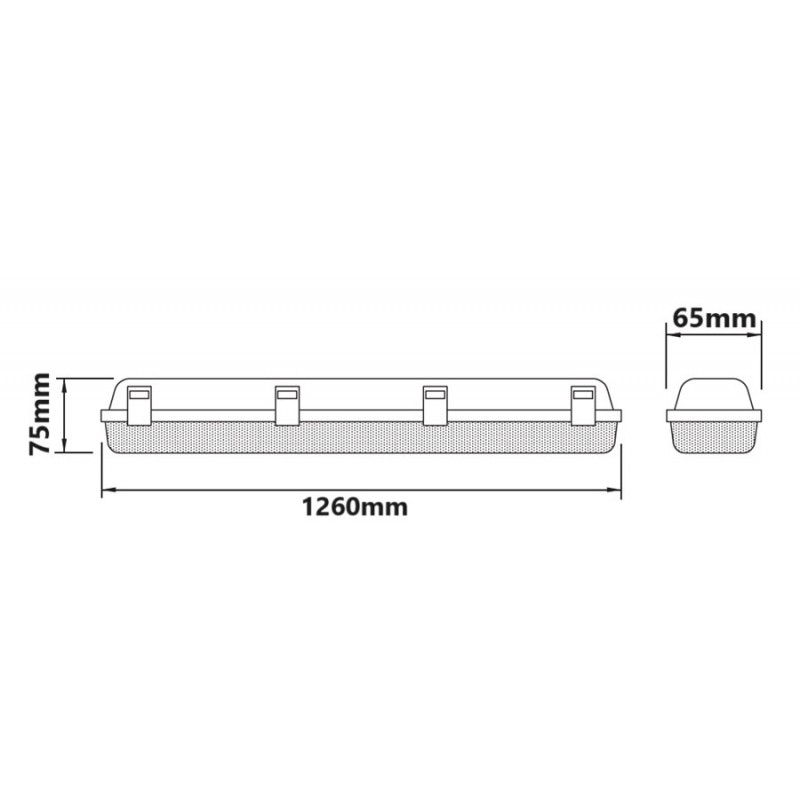 Pantalla estanca PEV136A1C para instalacion de 1 tubo LED de 1200mm sin necesidad de modificar su cableado. Con dos conexiones por un extremo del tubo. Llegar y conectar directamente.