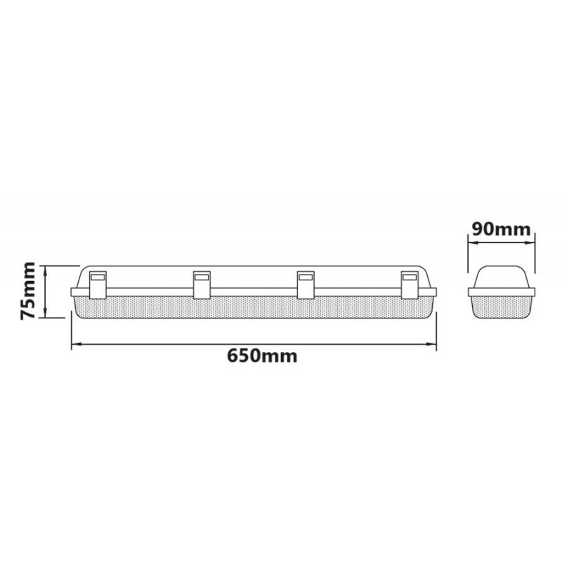 Pantalla estanca PEV218A1C para instalacion de 2 tubso LED de 600mm sin necesidad de modificar su cableado. Con dos conexiones por un extremo del tubo