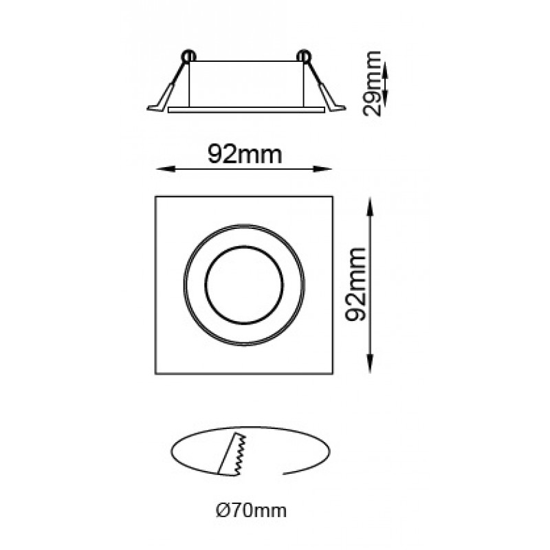 Dimensiones | 92x92mm, corte Ø 70mm |