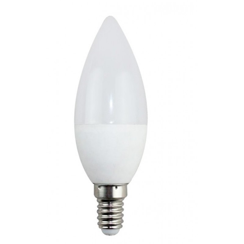 Bombilla LED vela lisa E14 6w Opal VLOE146W. Ahorra más de un 60% respecto de las luminarias de bajo consumo y con un 10% más de luminosidad. Encendido instantáneo, no parpadea, no hace ruido.