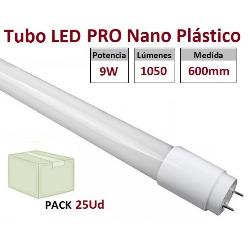 Tubo LED FT8PC069WP25 T8 600mm Nano PC 9W, conexión 1 lado, Caja de 25 ud. Tubo fabricado con nuevos materiales de Nano plástico, gran calidad, altamente resitente.