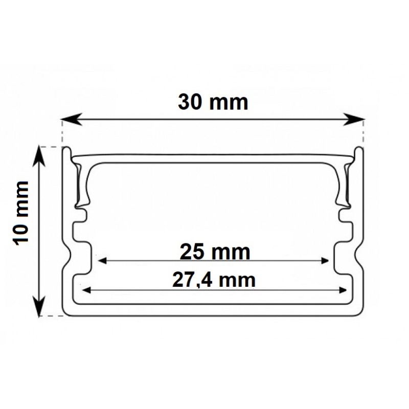 Perfil de aluminio de superficie de 30x10mm. Barra de 2 metros.Para tira LED.