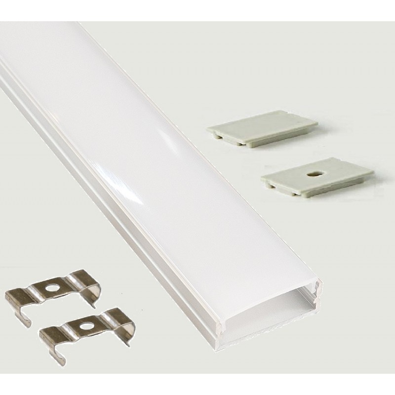 El precio incluye: Tira perfil, 2 tapas finales, 2 grapas fijación y difusor.