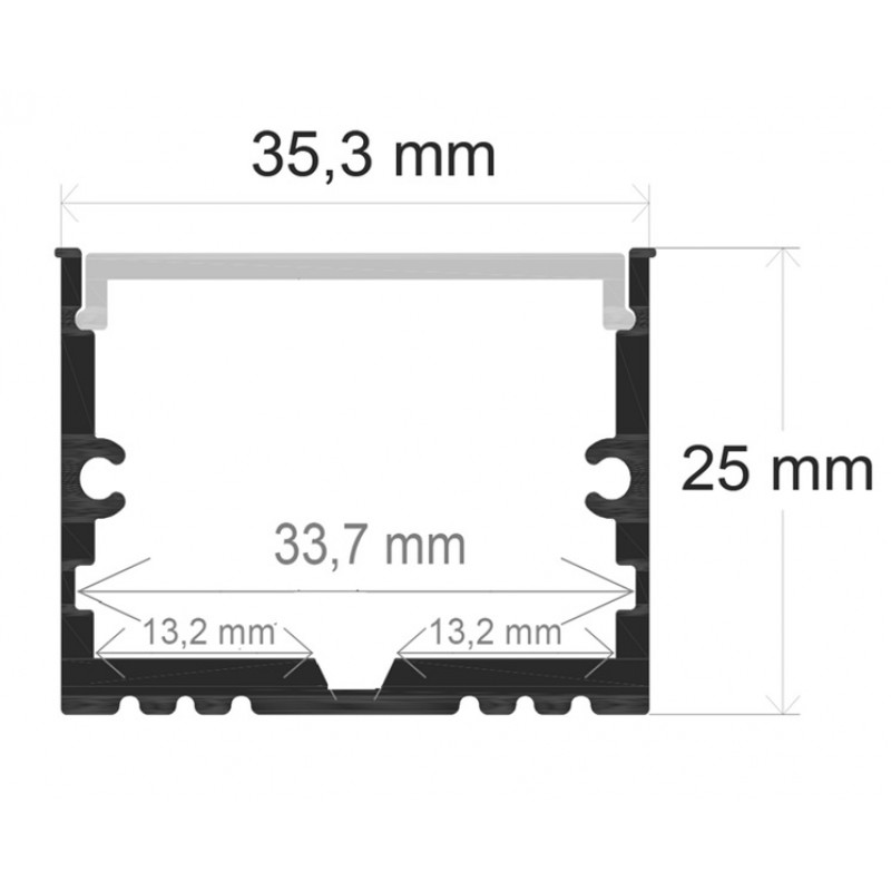 Perfil de aluminio de superficie de 35,3x25mm. Barra de 2 metros.Para tira LED.