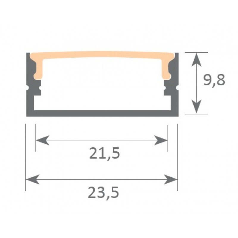 Perfil de aluminio de superficie de 23,5x10mm. Barra de 2 metros.Para tira LED.