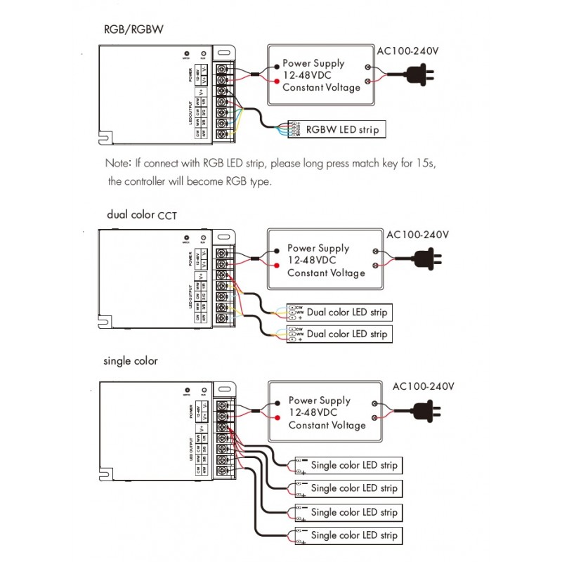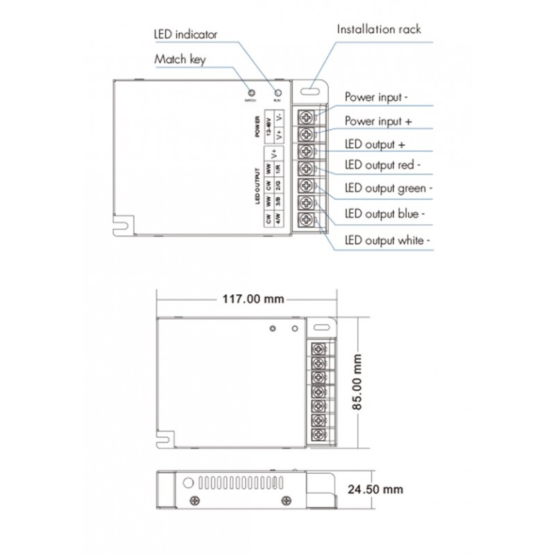 Receptor Controlador Monocolor, RGB, RGBW, CCT, 12V-48V 384W-960W 4 canales CRGB9604CV4X, solamente necesita instalar las tiras que desee controlar y realizar una sencilla configuración, con lo que tendrá un control total de todas las tiras LED de su instalación de forma inalámbrica. Cada zona o grupo de tiras que se necesiten controlar de forma independiente requiere de un controlador. Un solo mando puede controlar distintas, de forma conjunta o independiente.