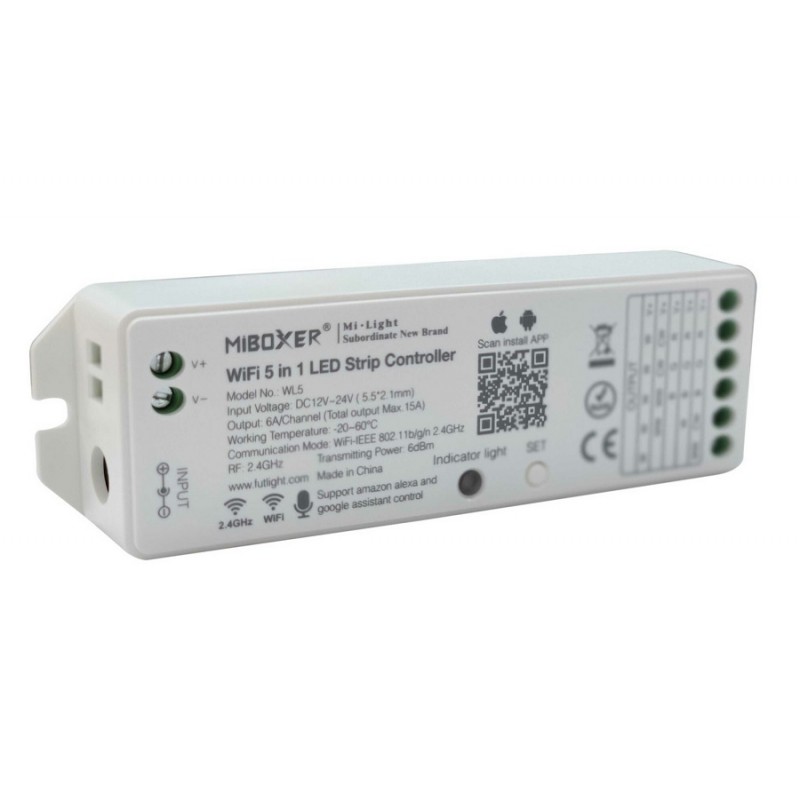 Receptor Controlador Monocolor, RGB, RGBW, CCT, RGB+CCT180W-360W, Wifi, Control por voz ó remoto CRGB3608ZWIFI, solamente necesita instalar las tiras que desee controlar (hasta 8 zonas) y realizar una sencilla configuración, con lo que tendrá un control total de todas las tiras LED de su instalación de forma inalámbrica. Cada zona o grupo de tiras que se necesiten controlar de forma independiente, requiere de un controlador. Un solo mando puede controlar hasta 8 zonas distintas, de forma conjunta o independiente.