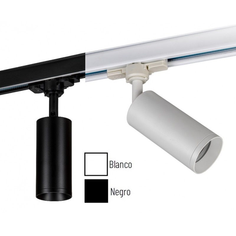 Foco Carril trifasico LED Blanco ó Negro, Lámpara GU10