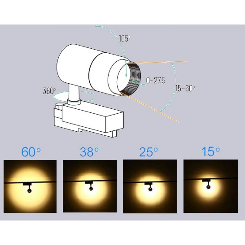 Foco Carril MD14 Trifásico LED COB 30W Negro, Ángulo ajustable 15º a 60º CRI90, Flicker Free FCTCOBMD1430WN para carril trifasico 4 vías están especialmente diseñados para cubrir las necesidades de un usuario exigente que precisa de luminarias que realcen elementos decorativos concretos, fomentando la creación de múltiples ambientes. Todos los modelos requieren de raíles para la instalación.