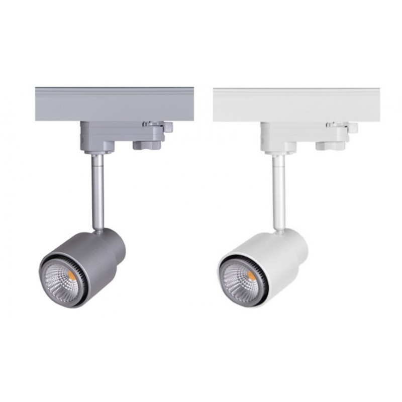 FocoGris ó Blanco carril trifasico FCTGU10 de alta calidad para incorporar lámpara LED GU10 y adaptador a carril trifásico integrado. Solo hay enchufarlo y listo