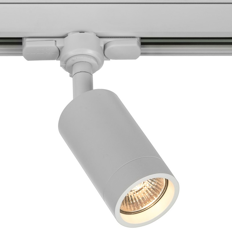 Foco carril trifasico 4 vias Blanco FCTBGU10L de alta calidad para incorporar lámpara LED GU10 y adaptador a carril trifásico integrado. Solo hay enchufarlo y listo