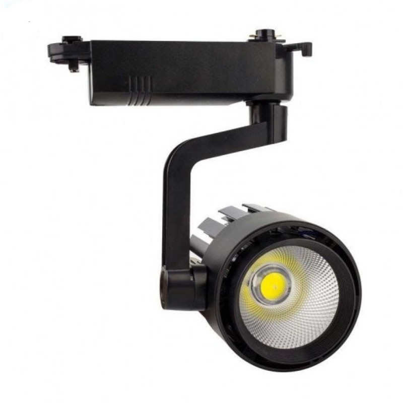 Foco Carril Monofásico LED COB 30W Negro FCMCOBLN02N30W para carril monofásico orientable en todas direcciones y fabricación de alta calidad en aluminio y lacado en color blanco.