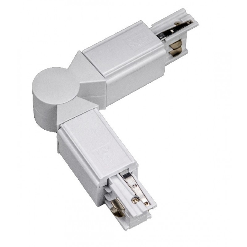Unión L con rótula Blanca ULRC4CB para carril trifásico para unir y alimentar dos tramos de carril en angulo.