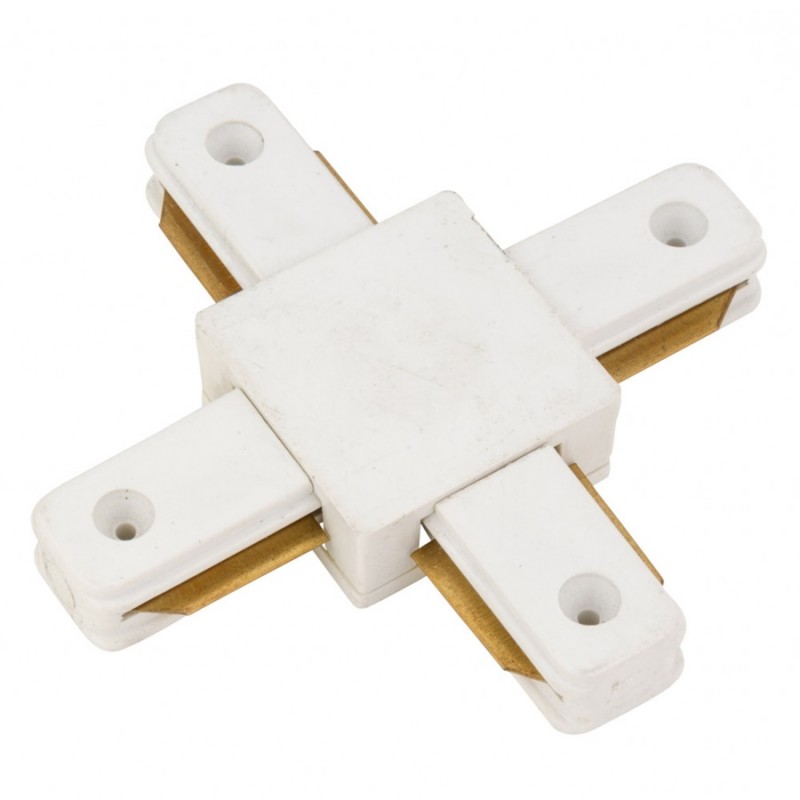 Unión X Blanca UXC2CB para carril monofásico para unir y alimentar cuatro tramos de carril en angulo.