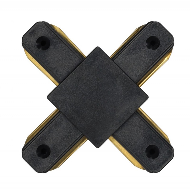 Unión X Negra UXC2CB para carril monofásico para unir y alimentar cuatro tramos de carril en angulo.