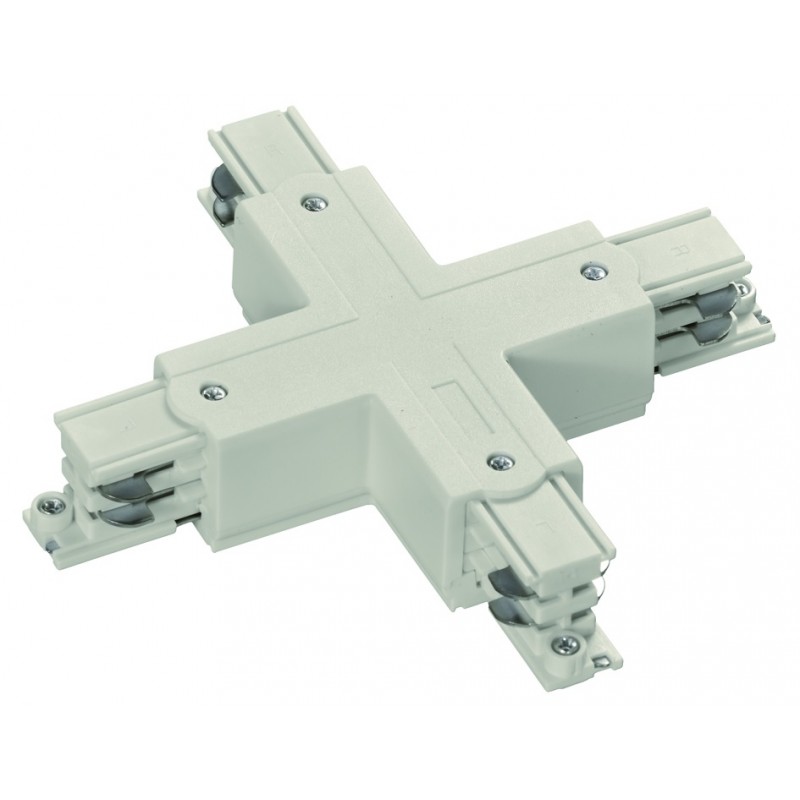 Unión X Carril trifásico Blanco UXC4CB para carril trifásico para unir y alimentar cuatro tramos de carril en angulo.