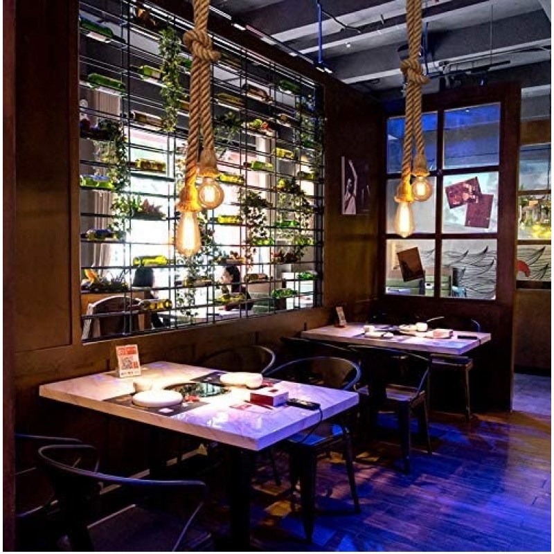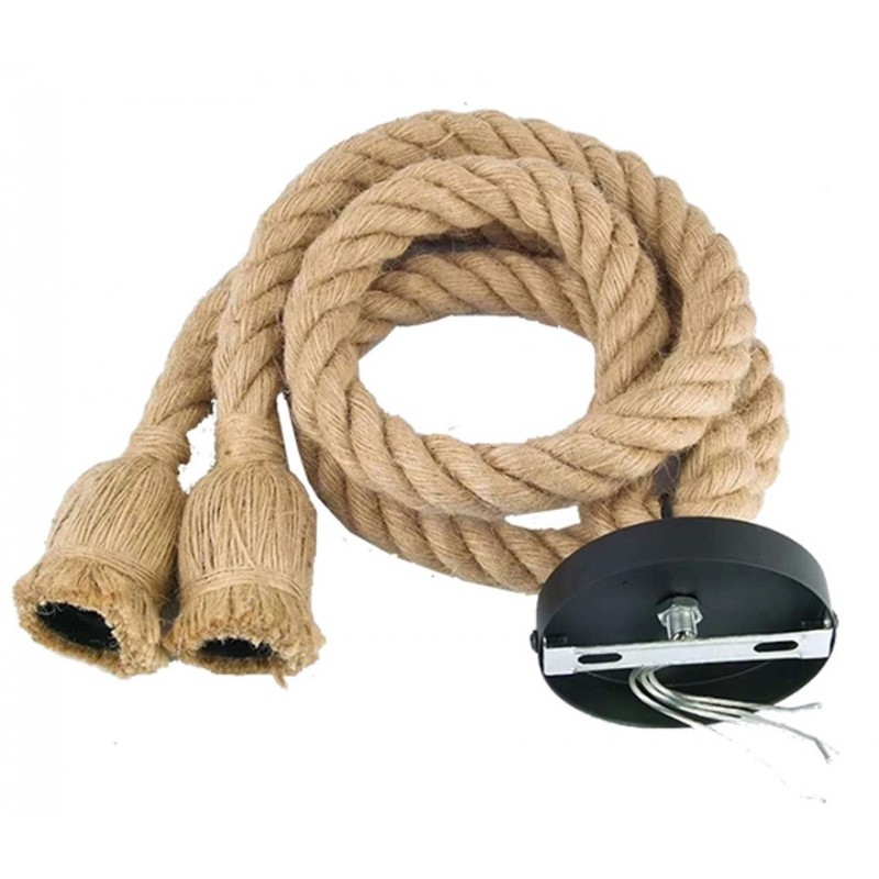 Portalámparas doble mod. Cuerda Vintage Rustico E-27 con 1 metro cable textil y florón PLE27CFCUERDA2.