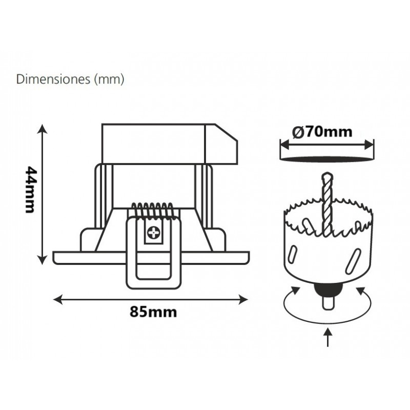 Foco Downlight LED Orientable Redondo Ø85mm 5w Blanco, FDROBSMD5W empotrar, de fácil instalación es ideal para la sustitución de halógenos e incandescentes en pasillos, cocinas, baños, vitrinas consiguiendo un gran ahorro en el consumo. Idóneo para crear un ambiente cálido y elegante, en obra nueva o rehabilitación.