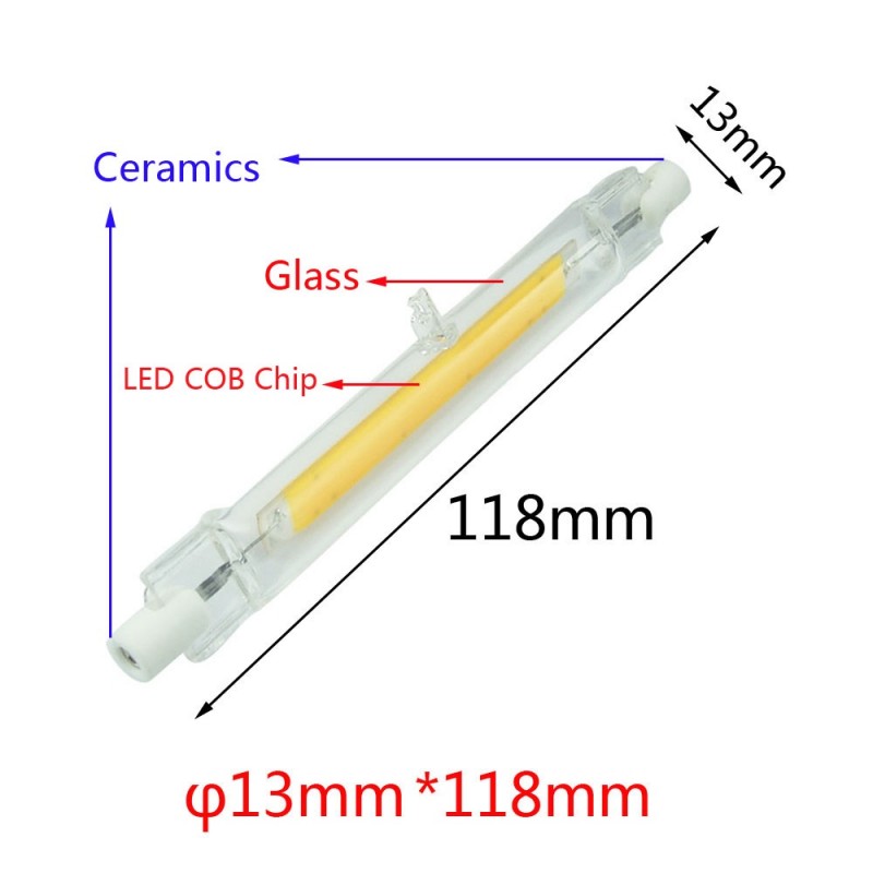 Lámparas LED R7s COB 118mm diámetro 14mm 230V 8W 1050Lm 6500ºK R7SC8W865 tienen una alta luminosidad y eficiencia energética, son la solución ideal para el reemplazo de las bombillas Halógenas lineales.