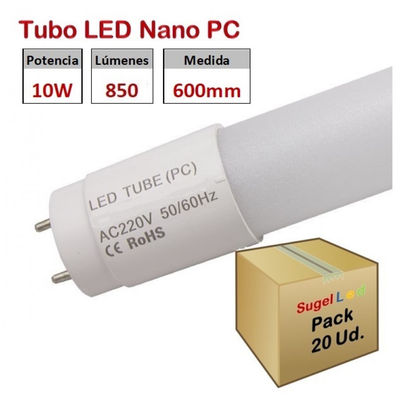 Tubo LED FT8PC0610WE20 T8 600mm Nano PC Eco 10W, conexión 1 lado, Caja de 20 ud. Tubo fabricado con nuevos materiales de Nano plástico, gran calidad, altamente resitente.