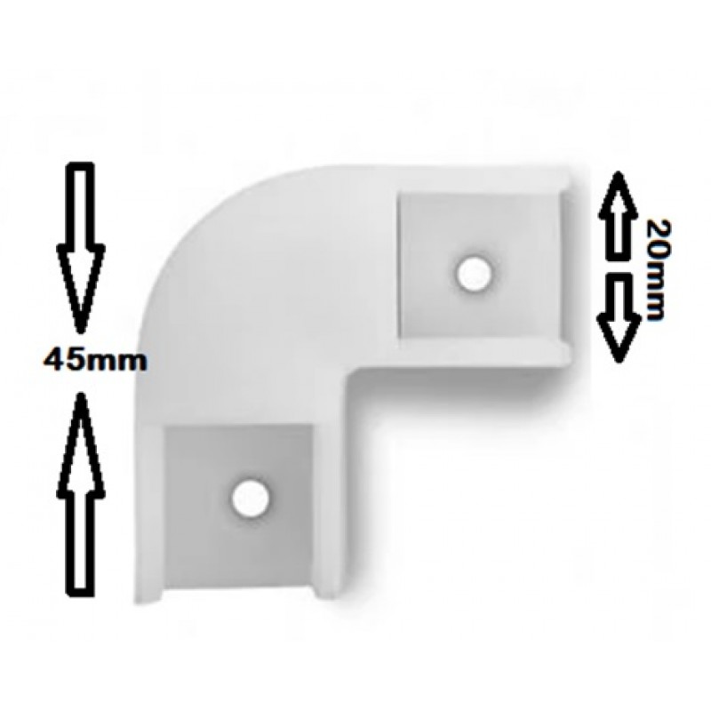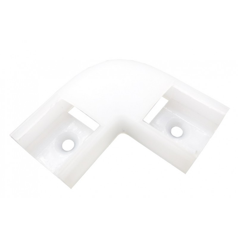 Angulo 90º fijación para perfil superficie PS1707 para instalar perfiles de aluminio de tiras de Led, este accesorio sirve para hacer un ángulo de 90º entre dos perfiles para crear formas, como cuadrados, rectángulos, con este esquinero podrás crear una "L" fácilmente, solo hay que encajar el perfil dentro del accesorio de PVC, el accesorio tiene 2 agujeros por los que podrías atornillar el perfil a la pared o techo. Es de PVC blanco.