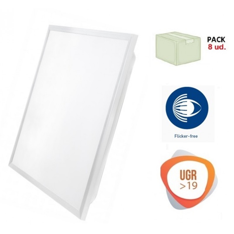 Panel LED Backlight 600X600mm 48W Marco Blanco Flicker Free UGR<19 PRO, caja 8 ud PL6060B48WHFFUGR19PROP8, son ideales para sustituir a las tradicionales pantallas de tubos fluorescentes