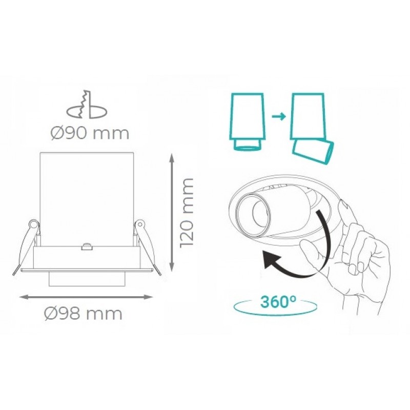 Foco Downlight LED COB Orientable Redondo Blanco Ø98mm 12w ALFA, FDROBCOB12WALFA empotrar, de fácil instalación es ideal para la sustitución de halógenos e incandescentes en pasillos, cocinas, baños, vitrinas consiguiendo un gran ahorro en el consumo.