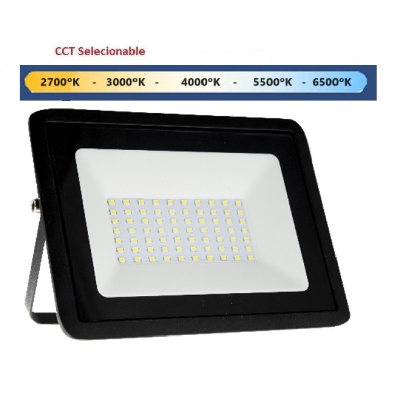 Foco Proyector LED exterior Slim IPAD Negro 50W IP65 SMD CCT Seleccionable FENIN50WSMDCCT con formato Slim de altas prestaciones, resistente y carcasa, de 30mm, compacta de aluminio de inyección con radiador eficiente, que garantiza una óptima disipación del calor y evita la pérdida de potencia de la luz. El radiador está equipado con un Microchip LED de alto brillo.