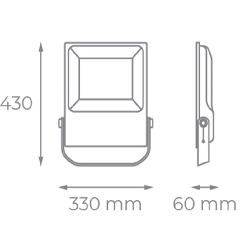 Foco Proyector LED exterior SLIM 150W IP-66, serie PRO FEPN150W con carcasa compacta de aluminio de inyección, lacado en negro que permite a el aparato soportar con mayor facilidad los ambientes agresivos, con radiador eficiente, que garantiza una óptima disipación del calor y evita la pérdida de potencia de la luz. El radiador está equipado con un Microchip LED SMD3030-Philips de alto brillo que dirige toda la potencia por todo el marco de la carcasa de aluminio, consiguiendo un excepcional rendimiento. Carcasa estanca y compacta, se adapta perfectamente en cualquier instalación.