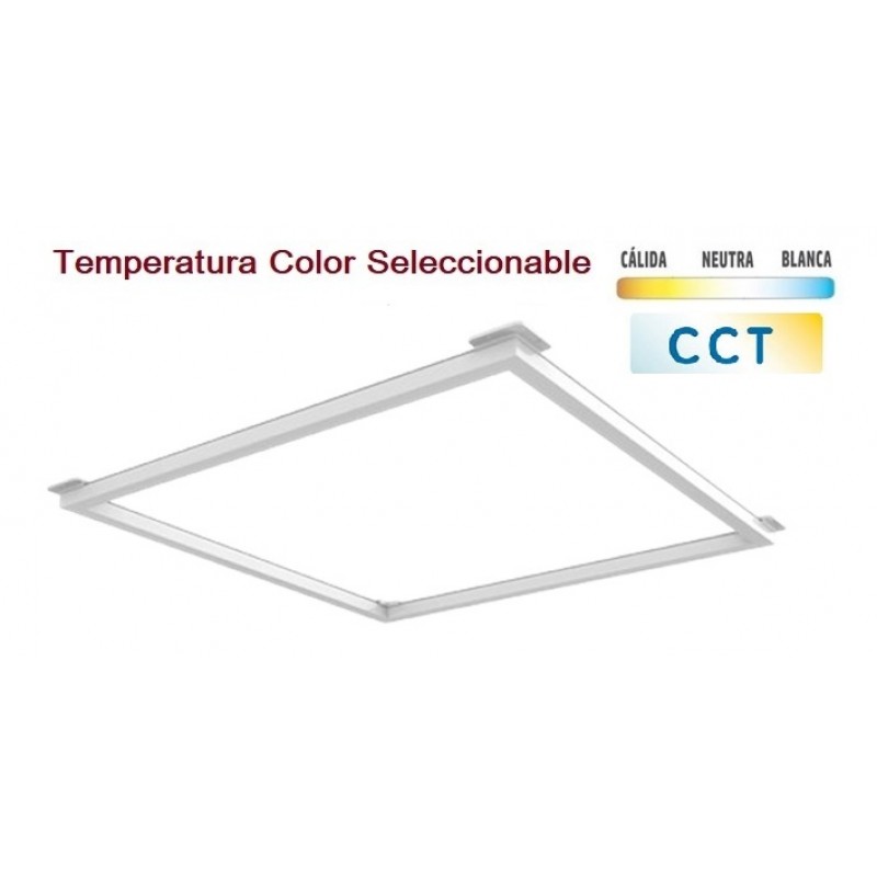 Panel LED Marco Luminoso 600X600mm 40W PC CCT PL6060L40WPCCCT, para instalar en techo técnico, permitiendo conservar las placas de escayola. También se puede instalar en superficie mediante tornillos o suspendido adquiriendo kit colgante para paneles LED.