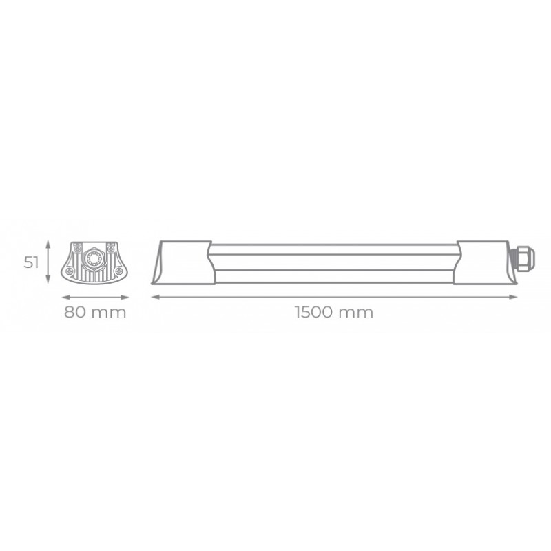 Regleta estanca LED IP65 PC1500mm 50W 5000Lm REC1550W. Con cuerpo plástico estanco y cabezas desmontables. Prensaestopas en ambas cabezas para una fácil interconexión en líneas de 2 o mas Regletas lineales.