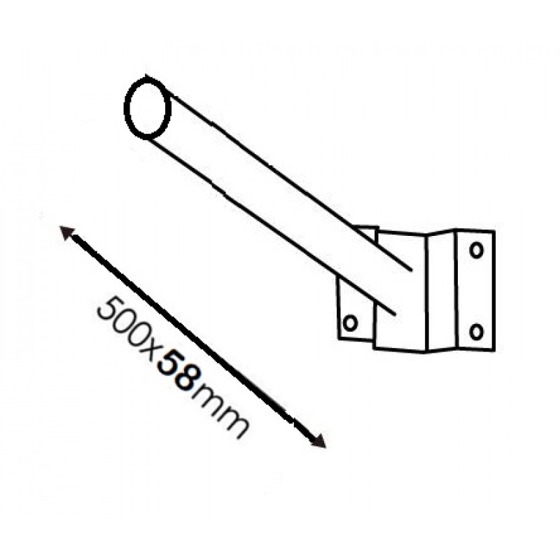 Soporte pared mástil para Farola Alumbrado Público 58mm FAPSPM58. Permite encajar en el soporte tubos de hasta 58 mm de diámetro. Mástil de aluminio de 500mm con inclinación de 45º para tubos de hasta 58mm.