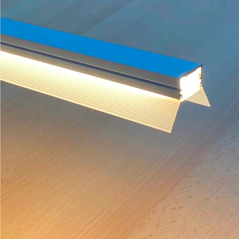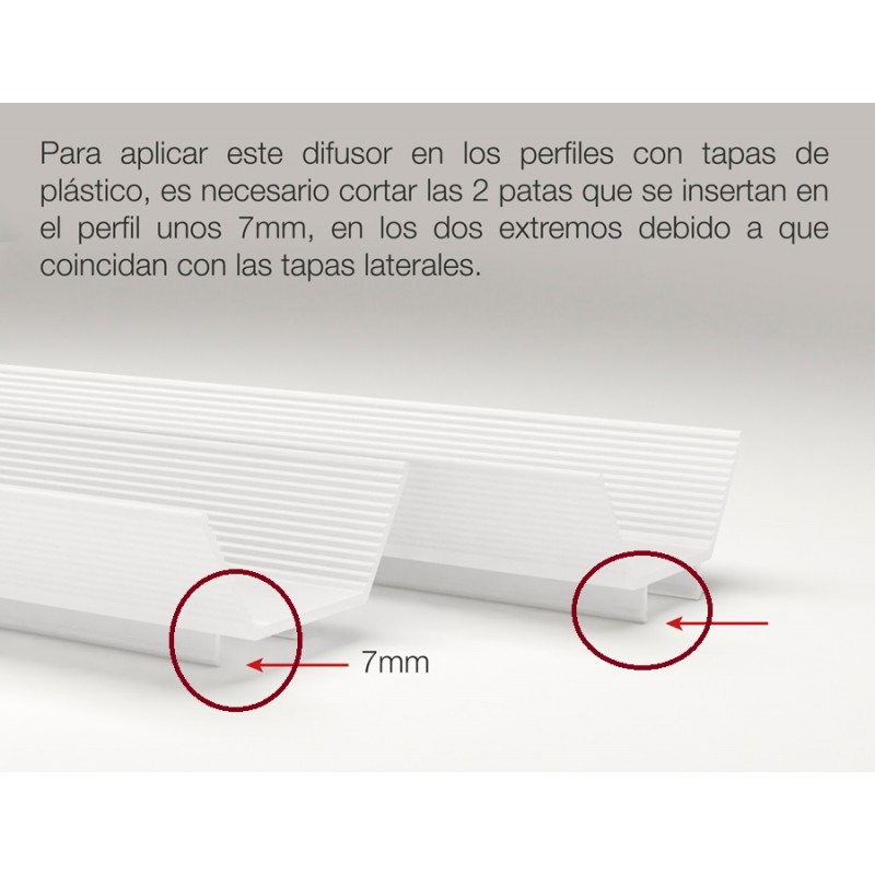 Difusor Glaseado Visera policarbonato para perfil aluminio anodizado Certificado DV6, tira 2 mts., para modelos perfil PS2011A, PS2020A, PE2812A, PA2222A, PA2220A, PSAT2620A, PR3939A