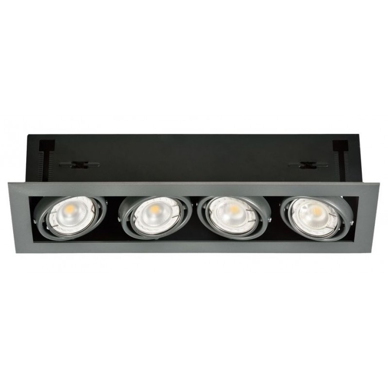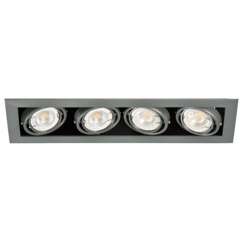 Foco Kardan Gris empotrar para 4 Lámpara GU10/MR16 FK4LD50L ·         Serie de empotrables LED tipo Kardan, orientables en cualquier sentido gracias a su ingenioso sistema basculante. Diseñados en versiones individual y múltiple, estas luminarias están construidas en chapa de acero, bisel y aros interiores en color Titanio  y pueden adaptarse a cualquier tipo de ambientes. Admiten lámparas LED y halógenas GU10/GX5.3.