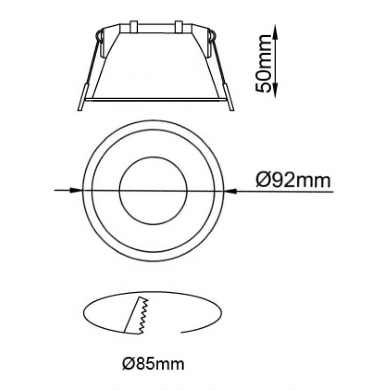 Dimensiones | Ø 92xH50mm, corte Ø 85mm |