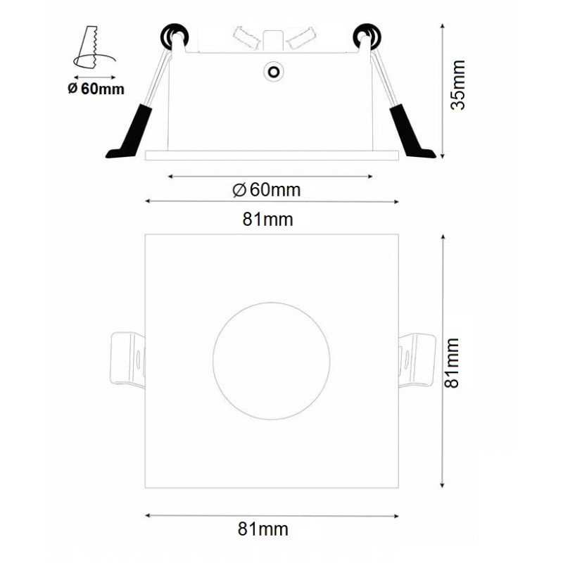Dimensiones 80x80xH35mm, corte Ø 60mm