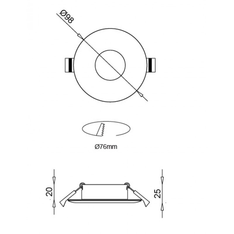 Dimensiones Ø98xH25mm, corte Ø 76mm