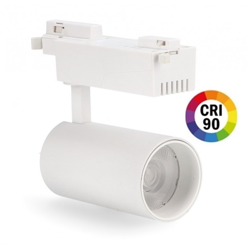 Foco Carril IS Monofásico LED COB 30W 36º Blanco FCMBIS30W para carril monofásico orientable y fabricación de alta calidad en aluminio y lacado en color blanco.