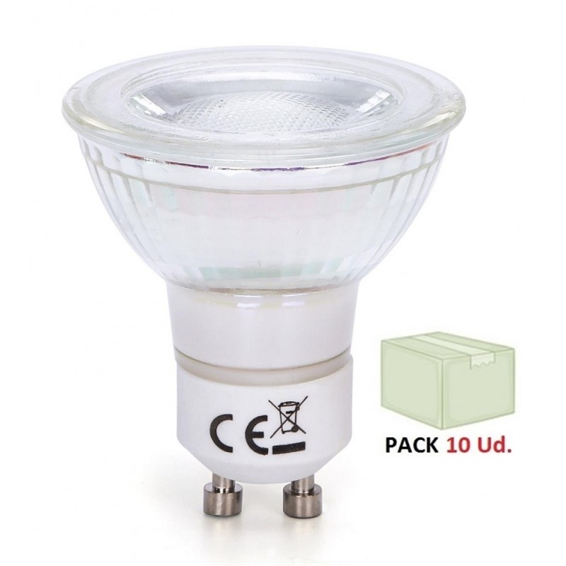 Bombilla LED GU10 COB Cristal 7W 40º Retro, Caja 10 ud GU10COB7W38RP10, perfecta para iluminación de interiores.