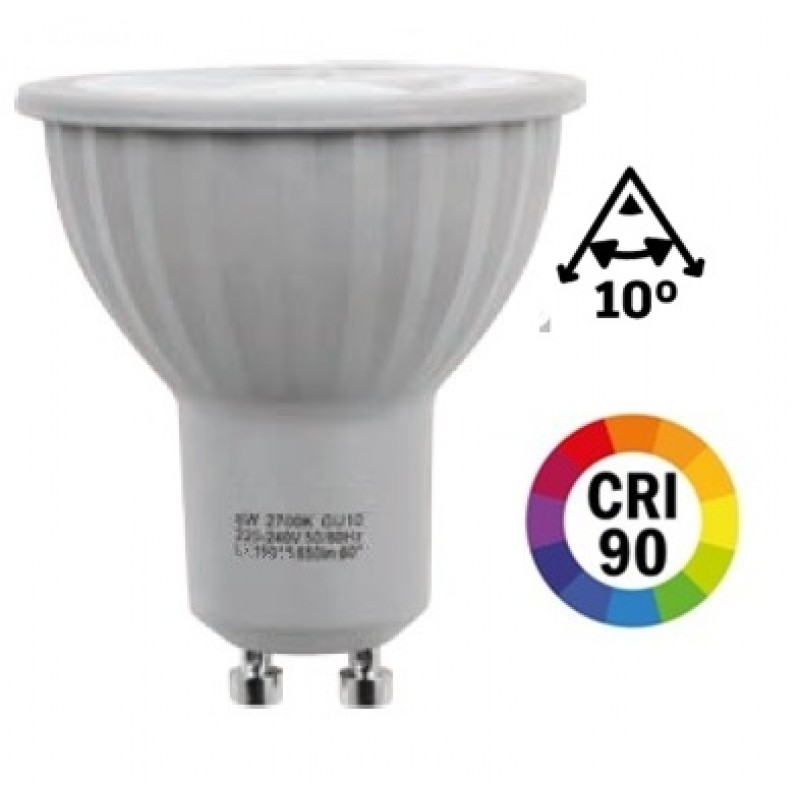 Bombilla LED GU10 SMD 6W 10º CRI90 GU10SMD6W10CRI90, perfecta para iluminación de interiores.