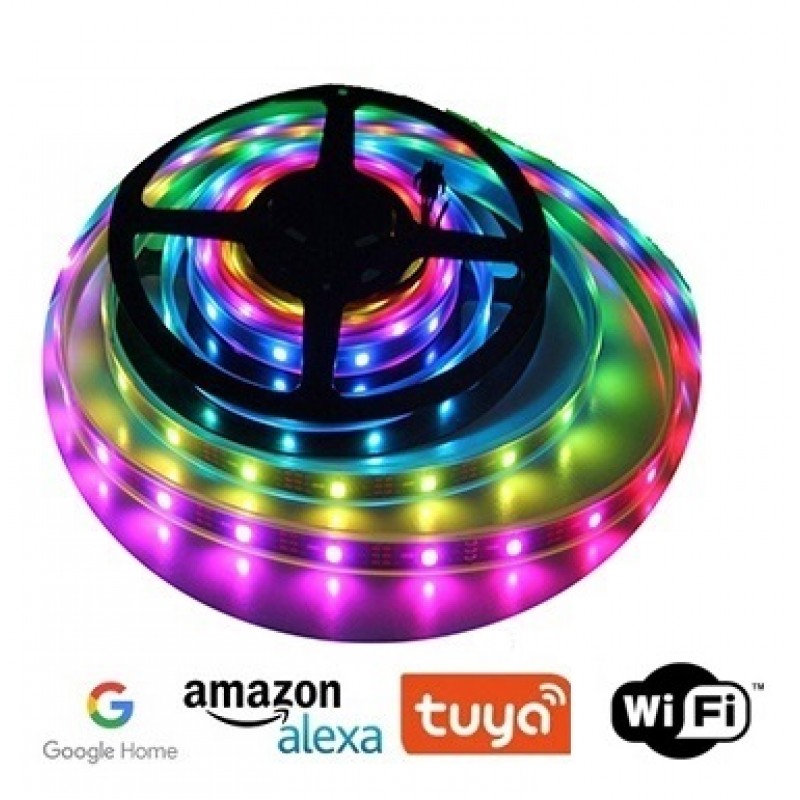 Tira LED 5 mts. Flexible 16W IP44 SMART Multitono TLF16WSMART. Tira LED IP44 de 5m, de regulación sencilla, mediante APP. Con el Kit de cnonexión, podrá cortar la tira LED a la medida deseada y conectar el tramo (o tramos) restantes a la corriente. Integración con todos los elementos a través de Google Home o Alexa . Si prefiere tener el “control” en el móvil, podrá actuar a través de Smart Life o Tuya. Lámparas y luminarias no interaccionan dentro de un mismo grupo de productos: lámparas y luminarias siempre deben pertenecer a grupos distintos. Apps disponibles en App Store & Google Play: