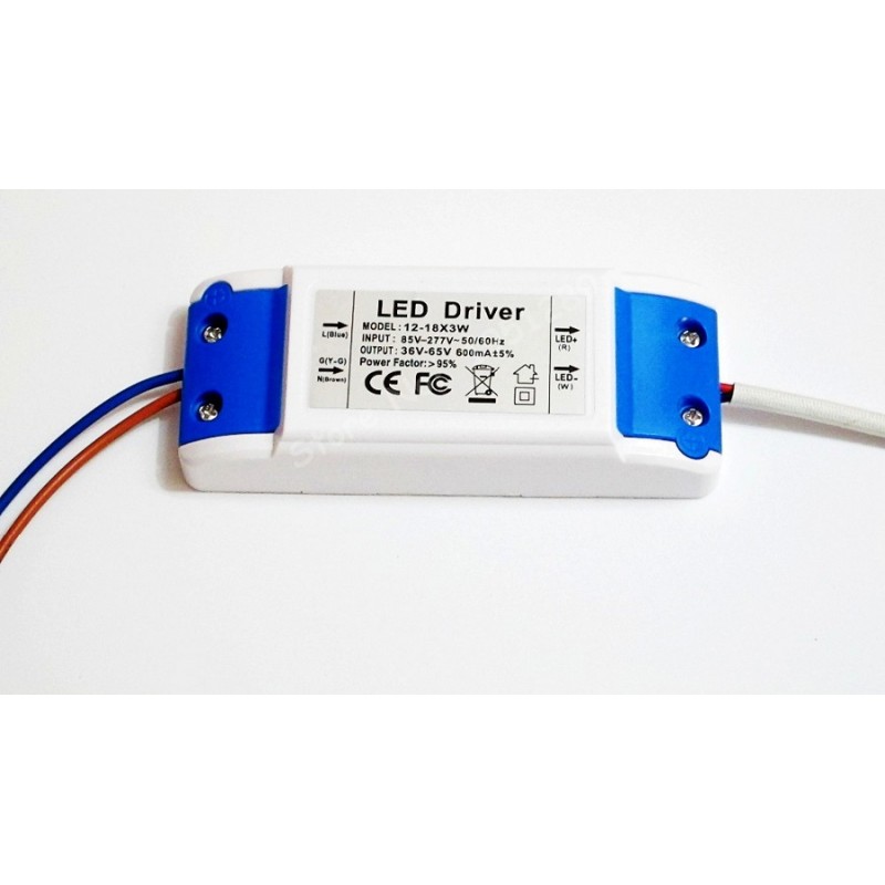Fuentes de alimentación o Driver aislado de 12-18x3W para Foco Downlight LED FAFD1218X3WS3660V300, están fabricadas para Focos led que usan corriente de 600mA. La tensión de salida es entre 36 y 60V dc. Su caja de plastico protege de posibles daños por causa de agua o polvo. Otra característica es su amplio rango de tensión de entrada, esto permitirá que las posibles fluctuaciones en la red eléctrica proteja su instalación.