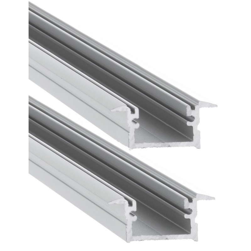 Perfil Empotrar de aluminio anodizado en plata de alta calidad, de 24x12mm. PE2412A6M, 6 mts (2 tramos de 3 mts). Se puede escoger el tipo de difusor entre opal, glaseado o transparente. Para instalar tira de LED.
