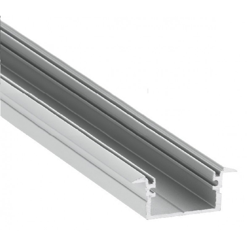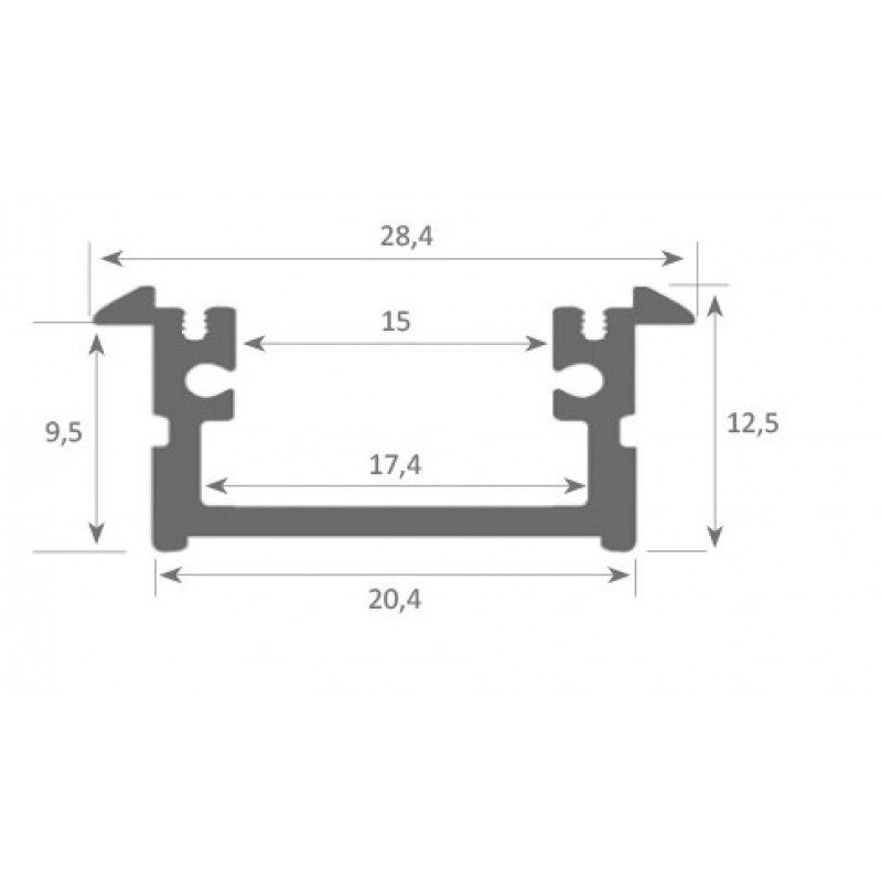Perfil Empotrar de aluminio anodizado en plata de alta calidad, de 28x12mm. PE2812A. Barra de 2 metros. Se puede escoger el tipo de difusor entre opal, glaseado o transparente. Para instalar tira de LED.